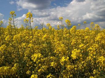 Keywords: rape blossom field of rapeseeds yellow summer clouds
