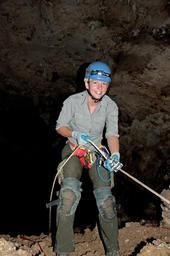 Keywords: A caver prepares to rappel down a vertical slope. (NPS Photo by Dale Pate) nps cave rappel caver