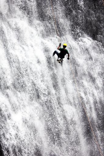 Keywords: rappelling waterfall adventure rope man sports water extreme