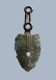 | Keywords: Rasoir Acy-Romance.jpg Bronze Razor from the Hallstatt culture Musée de l'Ardenne France The handle is fixed and the razor has two cutting edges Decorative ridges can also be seen following the direction of the handle into the blade The pointed tip of the blade indicates additional uses as a knife or a weapon The three circular holes on the handle and the blade body indicate the possibility they could be used for fasteners in a spear head as well It is on exhibit at the Ardennes Museum in France Rasoir en bronze 1er âge du fer civilisation de Hallstatt trouvé à Acy-Romance Musée de l'Ardenne Charleville-Mézières 08 France own 10/04/07 Vassil Musée de l'Ardenne Hallstatt culture artefacts Iron Age razors Acy-Romance Prehistoric artefacts from Ardenne departement |