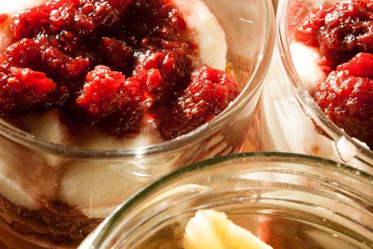 Keywords: raspberries dessert fruit the sweetness red sweet sweet dish delicious colorful composition