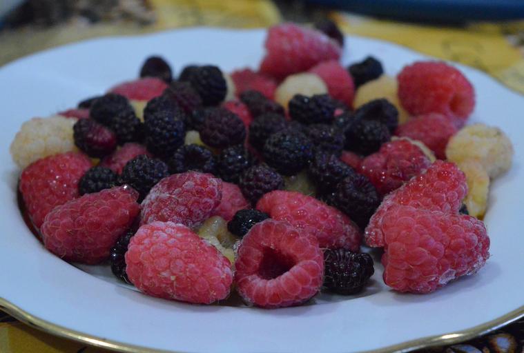 Keywords: raspberry berry berries of a raspberry ripe raspberry black berries plate appetizing dessert nutrition