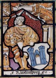 | Keywords: Rathaus Pfullendorf Wappenscheibe Ravensburg.jpg Wappenscheibe der Reichsstadt Ravensburg; Stiftung der Stadt Ravensburg für das neue Rathaus in Pfullendorf erbaut 1524/1525 ; Glasgemälde von Christoph Stimmer aus Schaffhausen Alfons Dreher Geschichte der Reichsstadt Ravensburg Band 2 1972 ISBN 3-87437-085-2 1525 Christoph Stimmer 1562 PD-art-100 Rathaus Pfullendorf Stained glass windows in Landkreis Sigmaringen Coats of arms of Ravensburg Coats of arms on stained glass windows in Baden-Württemberg |