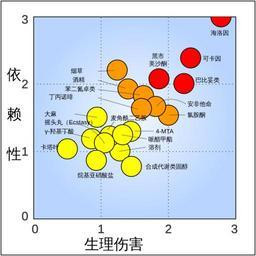 | Keywords: Rational scale to assess the harm of drugs (mean physical harm and mean dependence) zh.svg zh 药品危害量表(意为对身体的伤害和 赖 ) own <br/> Based on Flie Rational scale to assess the harm of drugs mean physical harm and mean dependence svg Skirtick 2015-08-09 Rational scale to assess the harm of drugs mean physical harm and mean dependence de svg Other versions/Rational scale to assess the harm of drugs mean physical harm and mean dependence 数据 prettytable sortable colspan 4 Physical harm colspan 4 Dependence colspan 4 Social harm - Drug Mean Physical harm<ref>NA Not Applicable is treated as zero</ref> Acute harm Chronic harm Intravenous harm Mean Dependence Pleasure Psychological Physical Mean Social harm Intoxication Social harm Health-care costs - Heroin 2 78 2 8 2 5 3 0 3 00 3 0 3 0 3 0 2 54 1 6 3 0 3 0 - Cocaine 2 33 2 0 2 0 3 0 2 39 3 0 2 8 1 3 2 17 1 8 2 5 2 3 - Barbiturates 2 23 2 3 1 9 2 5 2 01 2 0 2 2 1 8 2 00 2 4 1 9 1 7 - Tobacco 1 24 0 9 2 9 NA 2 21 2 3 2 6 1 8 1 42 0 8 1 1 2 4 - Alcohol 1 40 1 9 2 4 NA 1 93 2 3 1 9 1 6 2 21 2 2 2 4 2 1 - Street methadone 1 86 2 5 1 7 1 4 2 08 1 8 2 3 2 3 1 87 1 6 1 9 2 0 - Ketamine 2 00 2 1 1 7 2 1 1 54 1 9 1 7 1 0 1 69 2 0 1 5 1 5 - Amphetamine 1 81 1 3 1 8 2 4 1 67 2 0 1 9 1 1 1 50 1 4 1 5 1 6 - Benzodiazepines 1 63 1 5 1 7 1 8 1 83 1 7 2 1 1 8 1 65 2 0 1 5 1 5 - 4-MTA 1 44 2 2 2 1 NA 1 30 1 0 1 7 0 8 1 06 1 2 1 0 1 0 - Buprenorphine 1 60 1 2 1 3 2 3 1 64 2 0 1 5 1 5 1 49 1 6 1 5 1 4 - Cannabis 0 99 0 9 2 1 NA 1 51 1 9 1 7 0 8 1 50 1 7 1 3 1 5 - Solvents 1 28 2 1 1 7 NA 1 01 1 7 1 2 0 1 1 52 1 9 1 5 1 2 - Ecstasy 1 05 1 6 1 6 NA 1 13 1 5 1 2 0 7 1 09 1 2 1 0 1 1 - Methylphenidate 1 32 1 2 1 3 1 6 1 25 1 4 1 3 1 0 0 97 1 1 0 8 1 1 - GHB 0 86 1 4 1 2 NA 1 19 1 4 1 1 1 1 1 30 1 4 1 3 1 2 - LSD 1 13 1 7 1 4 0 3 1 23 2 2 1 1 0 3 1 32 1 6 1 3 1 1 - Anabolic steroids 1 45 0 8 2 0 1 7 0 88 1 1 0 8 0 8 1 13 1 3 0 8 1 3 - Khat 0 50 0 3 1 2 NA 1 04 1 6 1 2 0 3 0 85 0 7 1 1 0 8 - Alkyl nitrites 0 93 1 6 0 9 0 3 0 87 1 6 0 7 0 3 0 97 0 8 0 7 1 4 <references /> http //news bbc co uk/1/shared/bsp/hi/pdfs/31_07_06_drugsreport pdf Drug classification making a hash of it Appendix 14 http //www thelancet com/journals/lancet/article/PIIS0140673607604644/abstract The Lancet 2007; 369 1047-1053 ImageNote 1 313 25 28 14 380 380 2 Heroin ImageNoteEnd 1 ImageNote 2 268 71 28 28 380 380 2 Cocaine ImageNoteEnd 2 ImageNote 3 258 109 28 28 380 380 2 Barbiturates ImageNoteEnd 3 ImageNote 4 159 89 28 28 380 380 2 Tobacco ImageNoteEnd 4 ImageNote 5 175 117 28 28 380 380 2 Alcohol ImageNoteEnd 5 ImageNote 6 216 143 28 28 380 380 2 Amphetamine ImageNoteEnd 6 ImageNote 7 129 159 28 28 380 380 2 Cannabis ImageNoteEnd 7 ImageNote 8 85 206 28 28 380 380 2 Khat ImageNoteEnd 8 Nutt et al's drug harm chart SVG health |