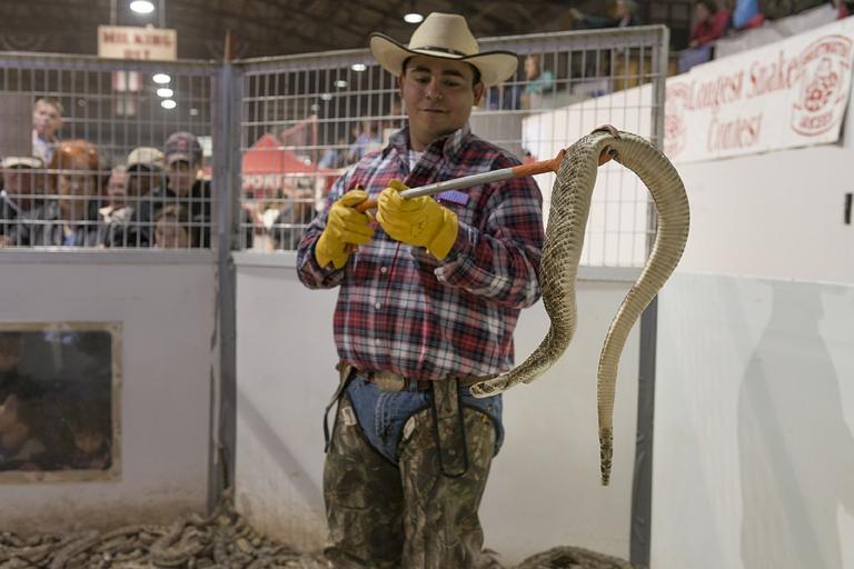 Keywords: rattlesnake handler cowboy roundup snakes poisonous venomous wild vipers dangerous reptiles sweetwater texas usa