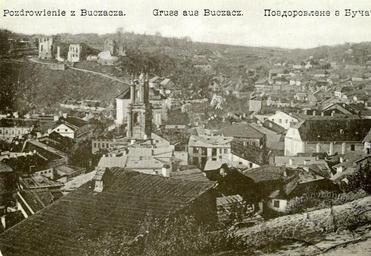 | Keywords: Ratusz, synagoge, Buchach.jpg uk Сп ава - синагога Бучача тепе на її місці - яди база у біля санстанції пе ед І-ю світовою ста а листівка невід other versions PD-Art Uploaded with UploadWizard Panoramic views of Buchach Synagogues in Ternopil Oblast |