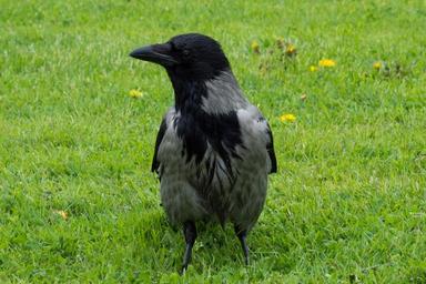Keywords: raven bird lawn grass black green