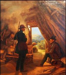 | Keywords: Rayski Auf der Jagdhütte Mainfränkisches Museum.JPG Artwork Creator Louis Ferdinand von Rayski 1838 Oil canvas Institution Mainfränkisches Museum Würzburg accession number object history credit line Das Bild zeigt Ludwig Erbgroßherzog v Hessen-Darmstadt stehend und Ferdinand v Rayski rechts uploader was Hajotthu at http //de wikipedia org de wikipedia Louis Ferdinand von Rayski Mainfränkisches Museum Ludwig IV Grand Duke of Hesse PD-old-100 | ||||
