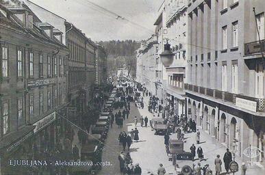 | Keywords: Razglednica Aleksandrove (Cankarjeve) ceste.jpg Razglednica Aleksandrove ceste between 1923 1946 http //www flickr com/photos/rimljancek/7914624208 author PD-Slovenia 20th-century postcards of Ljubljana Postcards of streets in Ljubljana Historical images of Cankarjeva cesta Ljubljana Historical images of street lights in the Center District Ljubljana Historical images of automobiles in the Center District Ljubljana | ||||