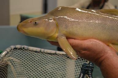| Keywords: Razorback sucker at National Fish Hatchery.jpg en A razorback sucker Xyrauchen texanus being raised at the Ouray National Fish Hatchery “ Grand Valley Unit located in Grand Junction Colorado U S 2016-08-15 04 13 02 https //www flickr com/photos/usfwsmtnprairie/28457610153/ U S Fish and Wildlife Service other versions PD-USGov Xyrauchen texanus |