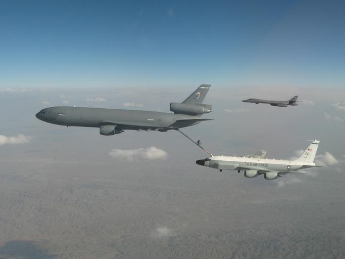 | Keywords: RC135 KC10 refuel.JPG en RC-135 Rivet Joint refuels with a KC-10 Extender over Afghanistan as a B-1 Lancer looks on 2010 own Frizbaloid 2010-04-12 RC-135V/W Rivet Joint Rockwell B-1 Lancer Aerial refueling by KC-10 Extender Aircraft in the War in Afghanistan 2001-present United States Air Force in the War in Afghanistan 2001-present |