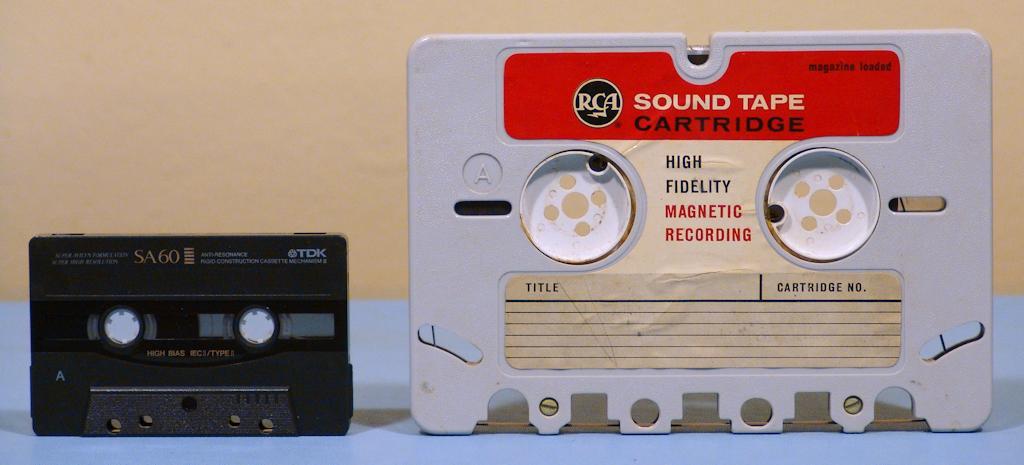 Keywords: RCAQuarterInchTapeCartridge-2.png en RCA quarter-inch tape cartridge shown with standard compact cassette for size comparison own Jeh92 2010-05-01 RCA Quarter Inch Tape Cartridge 2A png 150 Original photograph of useful or non-artistic objects RCA and TDK logos on products are small and so are considered Commons De minimis usage cc-zero Compact Cassette Magnetic audio tape |