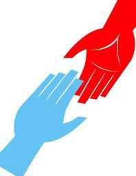 Keywords: reaching out helping cooperation cooperate together care hands red blue open rescue touch feel support sign symbol