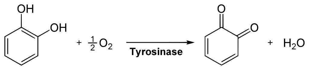 Keywords: Reaction Tyrosinase.svg en Catalysis of the Tyrosinase de Tyroninase katalyisert die Oxidation von Catechol in Benzochinon own Yikrazul 1 9 08 Oxidoreductases Copper complexes Enzyme reactions Tyrosinase