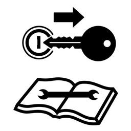 Keywords: read manual first key lock start engine warning danger attention black sign symbol icon