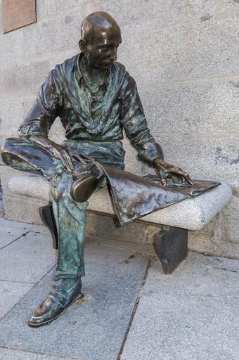Keywords: reader read statue bronze sitting madrid metal art sculpture monument
