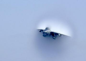 Keywords: F-14B Tomcat reaches sound barrier during low altitude super sonic fly