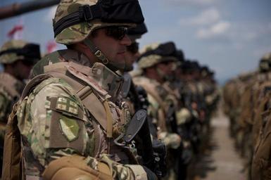 | Keywords: noble partner noblepartner army u.s. army usarmy people VAZIANI TRAINING AREA, Georgia - A Georgian soldier stands ready for the opening ceremony for Exercise Noble Partner 16, May 11, at Vaziani Training Area, Georgia. The ceremony included static displays of multinational soldiers and their equipment, airborne operations and speeches from senior officials, including Georgian President Giorgi Margvelashvili. The exercise is taking place May 11 to 26 and includes approximately 1300 participants from the U.S., Georgia and the U.K. The exercise is a reoccurring training event that is taking place at Vaziani Training Area, Georgia. Noble Partner 16 is a critical part of Georgia's training for its contribution of a light infantry company to the NATO Response Force (NRF) and enhances Georgian territorial self-defense capability. (Photo by Sgt. Daniel Cole, U.S. Army Europe Public Affairs) VAZIANI TRAINING AREA, Georgia - A Georgian soldier stands ready for the opening ceremony for Exercise Noble Partner 16, May 11, at Vaziani Training Area, Georgia. The ceremony included static displays of multinational soldiers and their equipment, airborne operations and speeches from senior officials, including Georgian President Giorgi Margvelashvili. The exercise is taking place May 11 to 26 and includes approximately 1300 participants from the U.S., Georgia and the U.K. The exercise is a reoccurring training event that is taking place at Vaziani Training Area, Georgia. Noble Partner 16 is a critical part of Georgia's training for its contribution of a light infantry company to the NATO Response Force (NRF) and enhances Georgian territorial self-defense capability. (Photo by Sgt. Daniel Cole, U.S. Army Europe Public Affairs) |