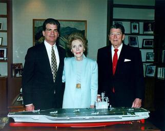 | Keywords: Reagans with USS Ronald Reagan model 1996.jpg Former President Ronald Reagan and First Lady Nancy Reagan as well as Newport News Shipbuilding Chairman and CEO Bill Fricks stand behind the model of the aircraft carrier USS Ronald Reagan CVN-76 The model was presented to President Ronald Reagan in May of 1996 http //www navsource org/archives/02/027607 jpg 1996-05 Bernard A Cardali United States Navy US Navy PD PD-USGov-Military-Navy Construction of USS Ronald Reagan CVN-76 Newport News Shipbuilding Nancy and Ronald Reagan Models of naval ships of the United States Standing people |