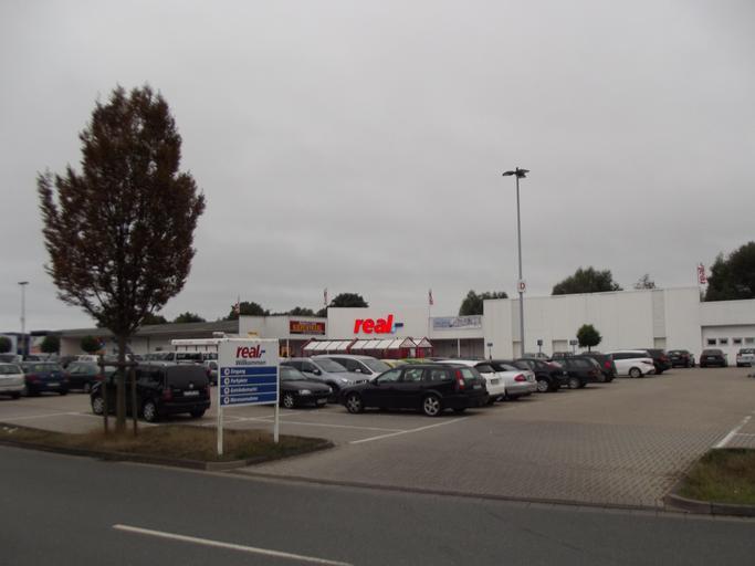 Keywords: Real Market Nordwalde.JPG en Typical Real supermarket with a huge parking area own NordhornerII 2013-09-15 Cc-zero Nordwalde 2013 in Nordwalde Real