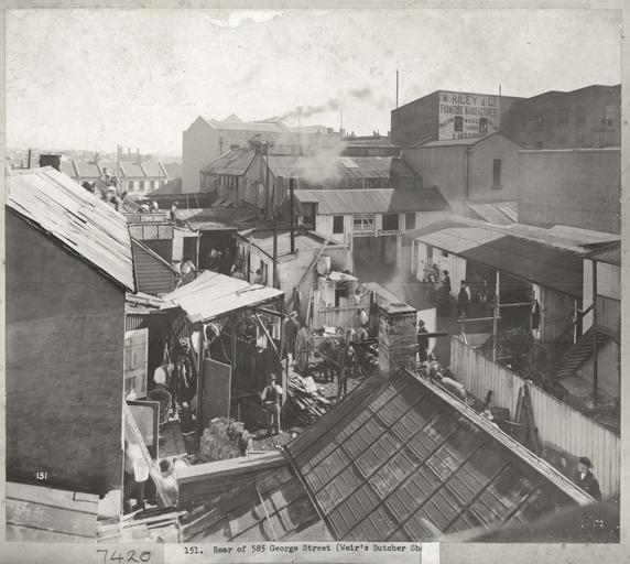 | Keywords: archives state records nsw staterecordsnsw newsouthwales blackandwhite plague john degotardi jr. johndegotardijr monochrome black and white From a series of images showing the areas in Sydney affected by the outbreak of Bubonic Plague in 1900. Taken by Mr. John Degotardi, Jr., photographer from the Department of Public Works, the images depict the state of the houses and 'slum' buildings at the time of the outbreak and the cleansing and disinfecting operations which followed.  Title: Rear of 585 George St showing Weir's Butcher Shop, Sydney (NSW)  Dated: c. 17/07/1900 Digital ID: 12487_a021_a021000041 Rights: www.records.nsw.gov.au/about-us/rights-and-permissions  We'd love to hear from you if you use our photos/documents.  Many other photos in our collection are available to view and browse on our website using Photo Investigator.  From a series of images showing the areas in Sydney affected by the outbreak of Bubonic Plague in 1900. Taken by Mr. John Degotardi, Jr., photographer from the Department of Public Works, the images depict the state of the houses and 'slum' buildings at the time of the outbreak and the cleansing and disinfecting operations which followed.  Title: Rear of 585 George St showing Weir's Butcher Shop, Sydney (NSW)  Dated: c. 17/07/1900 Digital ID: 12487_a021_a021000041 Rights: www.records.nsw.gov.au/about-us/rights-and-permissions  We'd love to hear from you if you use our photos/documents.  Many other photos in our collection are available to view and browse on our website using Photo Investigator. |