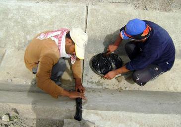 | Keywords: Rebuilt irrigation canals flow fresh water to Taji farms DVIDS93455.jpg en A pair of local contractors put tar in the cracks of an irrigation canal which stretches for miles to service the many farms south of the city of Taji which is located northwest of Baghdad June 4 These contractors were hired by the 2nd Squadron 14th Cavalry Regiment Strykehorse 2nd Stryker Brigade Combat Team Warrior 25th Infantry Division Multi-National Division “ Baghdad to improve the infrastructure of the area which will become the foundation of an improved economy for the city U S Army photo/Capt Ronnie Geronimo 2008-06-04 https //www dvidshub net/image/93455 93455 2008-06-09 15 05 TAJI IQ PD-USGov 25th Infantry Division United States Images from DoD uploaded by Fæ |