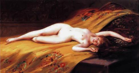 | Keywords: Reclining Nude, by Luis Ricardo Falero.jpg en Reclining Nude This painting was once named The Opium Smoker https //archive org/stream/catalogueofberli00phot page/58/mode/1up/search/falero but since the subject on this painting is holding an opium pipe a mix-up is probable oil on canvas 38 1 x 74 93 cm signed l l Falero / 1893 http //www the-athenaeum org/art/detail php ID 16876 The Athenaeum Creator Luis Ricardo Falero 1893 Luis Ricardo Falero PD-old-100 Images from the-athenaeum org Paintings of nude recumbent females |