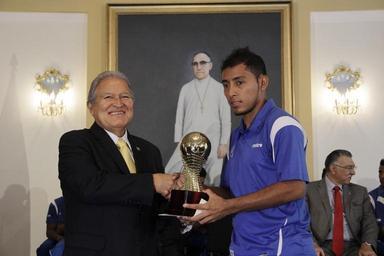Keywords: groupshot people indoor EL PRESIDENTE SALVADOR SANCHEZ CEREN ENTREGA UN RECONOCIMENTO A MIEMBROS DE LA SELECCION DE FULTBOL PLAYA . EL PRESIDENTE SALVADOR SANCHEZ CEREN ENTREGA UN RECONOCIMENTO A MIEMBROS DE LA SELECCION DE FULTBOL PLAYA .
