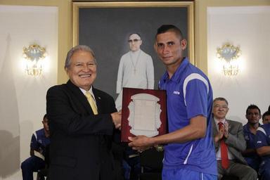 Keywords: groupshot people indoor EL PRESIDENTE SALVADOR SANCHEZ CEREN ENTREGA UN RECONOCIMENTO A MIEMBROS DE LA SELECCION DE FULTBOL PLAYA . EL PRESIDENTE SALVADOR SANCHEZ CEREN ENTREGA UN RECONOCIMENTO A MIEMBROS DE LA SELECCION DE FULTBOL PLAYA .