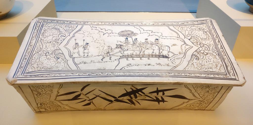 Keywords: Rectangular pillow with figures in landscape, China, Hebei province, approx. 1100-1234 AD (Song, Liao, or Jin dynasties), ceramic with white slip, clear glaze, overglaze- Asian Art Museum of San Francisco - DSC01353.JPG en Exhibit in the Asian Art Museum of San Francisco San Francisco California USA This artwork is in the public domain because the artist died more than 70 years ago Photography was permitted in the museum without restriction 2013-11-05 20 14 39 own Daderot other versions cc-zero Ceramic pillows in the Asian Art Museum of San Francisco Uploaded with UploadWizard |