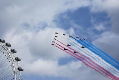 Keywords: red arrows aerobatics formation bae hawk trainer london eye air show flight travel fly air aviation wing engine propeller airplane vehicle aero plane plane