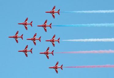 | Keywords: Red arrows in apollo formation cotswoldairshow 2010 arp.jpg The nine British Aerospace Hawks of the Red Arrows in Apollo formation at the Cotswold Air Show at Cotswold Airport Kemble Gloucestershire England June 2010 own Adrian Pingstone Arpingstone Arpingstone Aircraft formation flight of the Red Arrows BAE Hawk in the 2010s Smoke trails of aerobatic teams | ||||