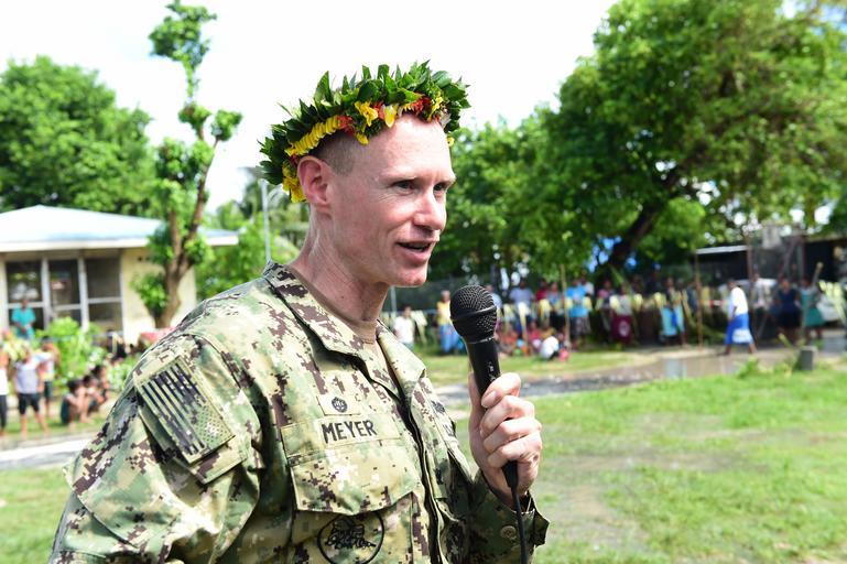 Keywords: Red Beach Primary School ribbon cutting 150617-N-HY254-046.jpg en TARAWA Kiribati June 17 2015 - Commodore Task Force Forager Capt James Meyer delivers a speech during a ribbon cutting ceremony June 17 The ribbon cutting marks the completion of renovations by Seabees attached to Pacific Partnership 2015 Task Force Forager is embarked aboard the Military Sealift Command joint high speed vessel USNS Millinocket JHSV 3 Millinocket is serving as the secondary platform for Pacific Partnership led by an expeditionary command element from the Navy ™s 30th Naval Construction Regiment 30 NCR from Port Hueneme Calif Now in its 10th iteration Pacific Partnership is the largest annual multilateral humanitarian assistance and disaster relief preparedness mission conducted in the Indo-Asia Pacific region While training for crisis conditions Pacific Partnership missions have provided medical care to approximately 270 000 patients and veterinary service to more than 38 000 animals Additionally Pacific Partnership has provided critical infrastructure development to host nations through the completion of more than 180 engineering products U S Navy photo by Chief Mass Communication Specialist Jonathan Kulp/Released 2015-06-17 Chief Petty Officer Jonathan Kulp https //www dvidshub net/image/2007129 150617-N-HY254-046 2015-06-17 06 05 TARAWA KI PD-USGov-Military-Navy Pacific Partnership 2015 Images from DoD uploaded by Fæ |
