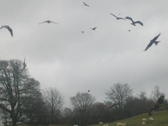 Keywords: Red kite feeding near Rhayadr Wales.JPG en Red kite feeding on a farm near Rhayadr Wales UK 2012-02-16 08 09 35 own Terese Bird cc-zero Uploaded with UploadWizard Milvus milvus in flight low quality