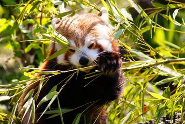 Keywords: red panda panda mammal wildlife nature bamboo china bear furry small eating red animal
