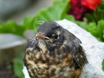Keywords: red robin bird feathered nature wildlife animal fledgling poult biddy close-up chick