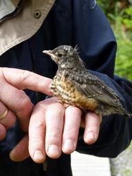 Keywords: red robin chick bird hand sitting nature animal feathered wild life