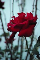 Keywords: red rose bush flower floral plant single stem green blossom