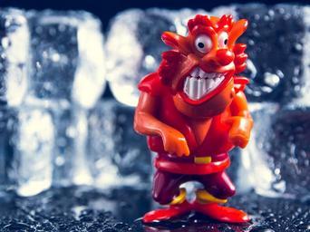 Keywords: red scary dark halloween vintage evil craft devil horror toy figurine miniature figure small little macro mini closeup model water cool drop ice white cold blue reflection frozen liquid light space glass winter bubble cube