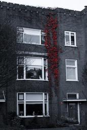Keywords: red vines bricks windows building apartment