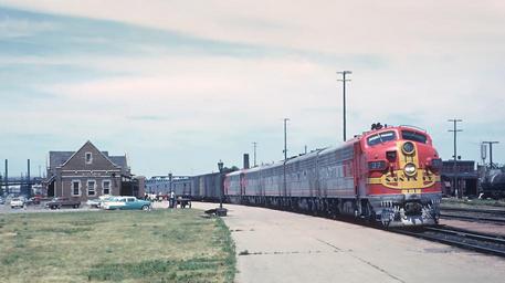 | Keywords: warbonnet santa fe santafe outdoor vehicle train locomotive railroad road These are Roger Puta's photographs. ATSF 37L (F7A) with Train 23, The Grand Canyon, at Streator, IL in July 1963. Note, the "L" is above the buffer. These are Roger Puta's photographs. ATSF 37L (F7A) with Train 23, The Grand Canyon, at Streator, IL in July 1963. Note, the "L" is above the buffer. | ||||