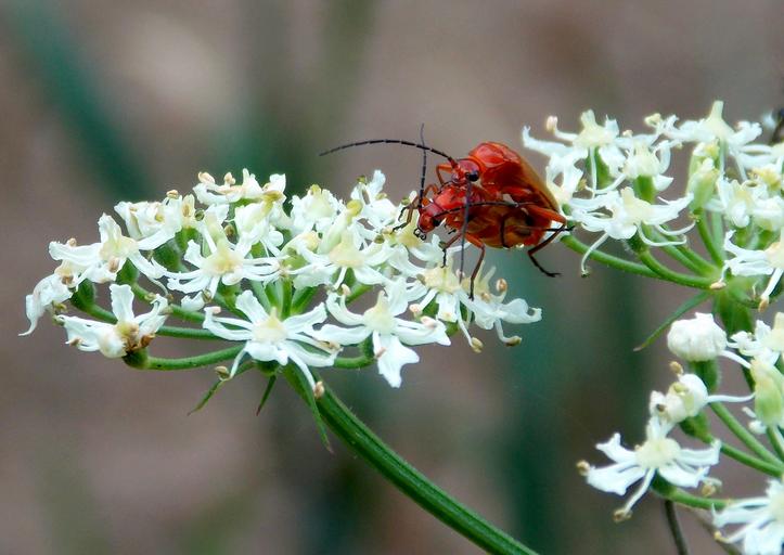 Keywords: red weichkäfer soldier beetle beetle insect nature meadow meadow yarrow yarrow grassland plants white red reproduction probe elytron fauna flora