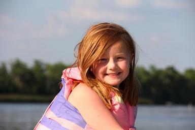 Keywords: redhead girl boat girl young pretty lifejacket river water red red hair
