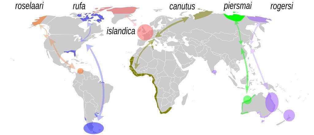 Keywords: RedKnotMigration.svg en Migration of Red Knot subspecies based on information from Buehler D M Baker A J Piersma T 2006 Reconstructing palaeoflyways of the late Pleistocene and early Holocene Red Knot Calidris canutus Ardea 94 3 485 “498 own Shyamal 2009-05 Calidris canutus Charadriiformes distribution maps |
