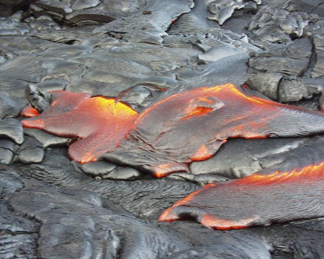 Keywords: Redlavahawaii.JPG Red Lava at Hawaii Location Hawaii Hawaii own 2003-09-14 Photographer Peleg Michaeli / ×¤× ×’ מיכ×× ×™ Pahoehoe lava Active lava flows of KÄ«lauea Molten lavas Lava toes Effusive eruptions
