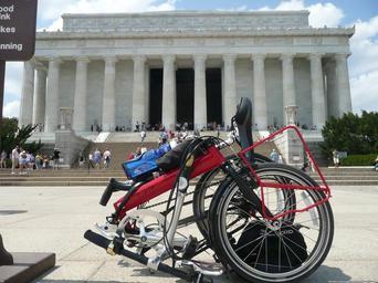 Keywords: RedMediumFoldedTikit.jpg en Folded Red Size-Medium Hyperfold Tikit near Lincoln Memorial Washington DC own Feijai Bike Friday Lincoln Memorial