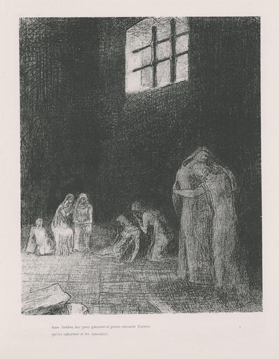 View Original:redon_in_shadow_people_are_weeping_praying_surrounded_others_who_are_exhorting_them_plate_1896.jpg (600x771)