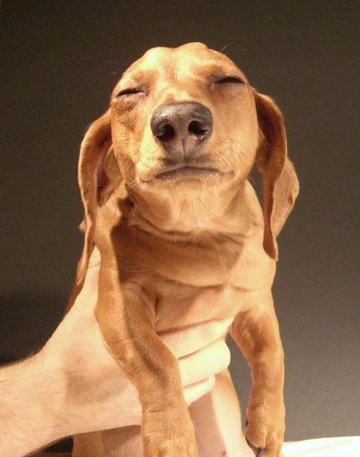 | Keywords: Redshorthaireddachshund.JPG  en young female dachshund red shorthaired approximately five months old Photo by Dean Dalton own Queenofthewilis 2007-08 Dachshund Female dogs Facial expressions of dogs Dogs on grey background Human hands holding dogs |