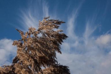 Keywords: reed phragmites australis grass poaceae marsh plant bluegrass long dust threads plant flora nature autumn blue sky bright cirrus cirrus clouds spring clouds