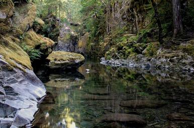 Keywords: reflecting pool opal creek stream willamette national forest oregon usa rocks trees refreshing green reflection water stone natural scenic landscape bridge wild rugged nature